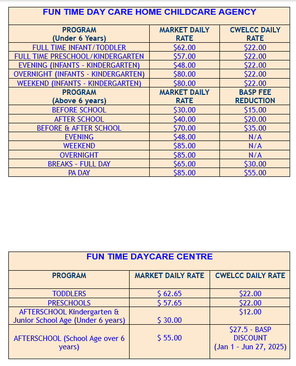 Fee Structure We are part of the Canada-Wide Early Learning & Child Care Program. Check out our new reduced CWELCC rate. CWELCC RATE Contact Us